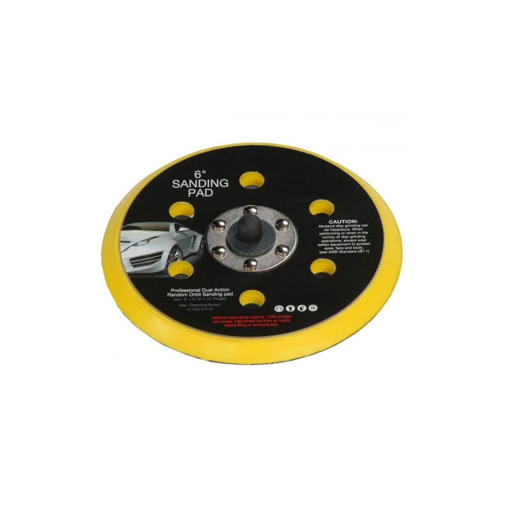 Featuring a single 5/16" mounting bolt, this backing pad is compatible with 150mm hook-and-loop (Velcro) sanding discs. The 6+1 hole configuration allows for efficient dust extraction, helping maintain a cleaner workspace and improved sanding performance.