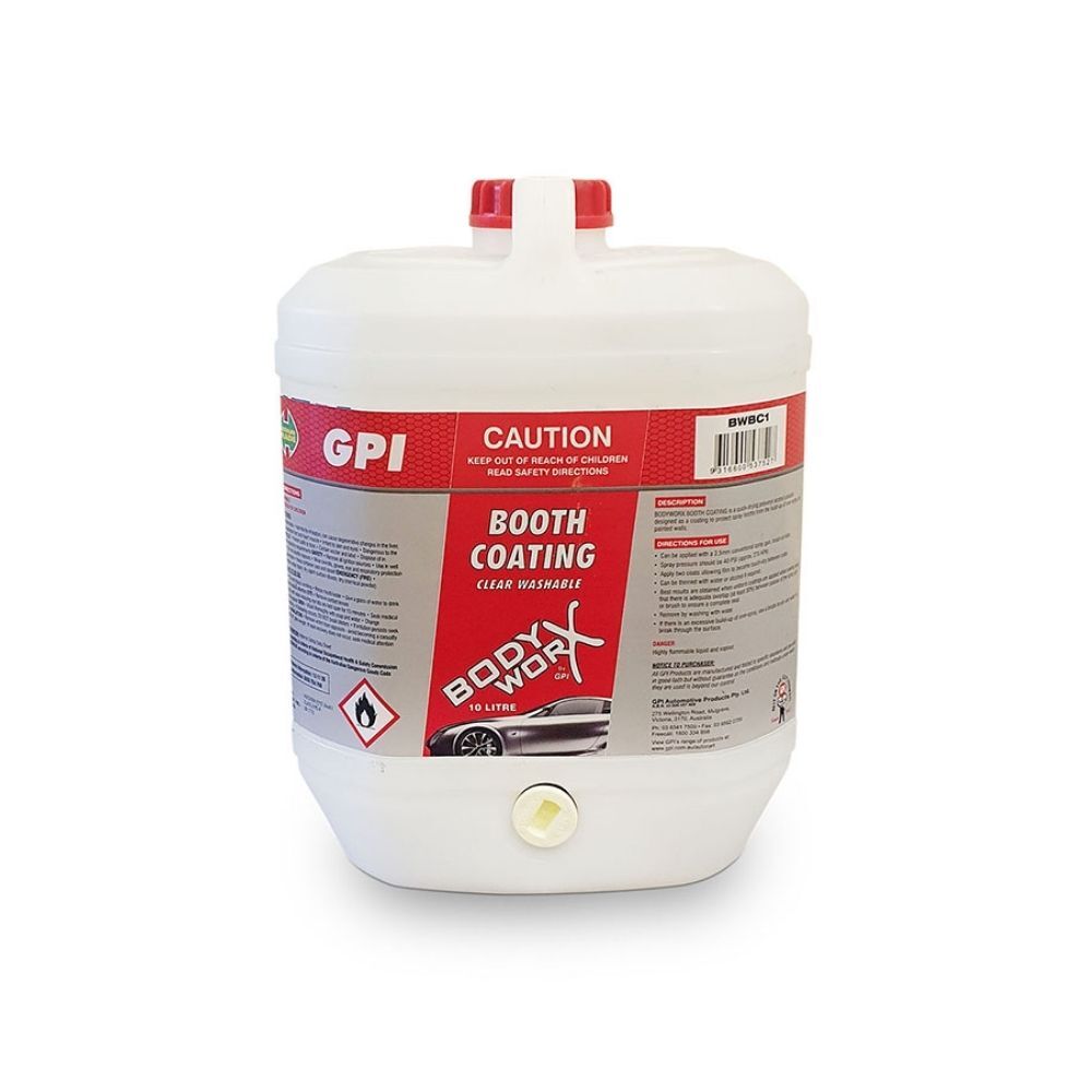 Bodyworx Clear Booth Coating is a washable spray booth coating designed to protect booth walls, ceilings and surfaces from paint overspray. The clear formula maintains light reflection while allowing for easy wash-down and removal when required.
