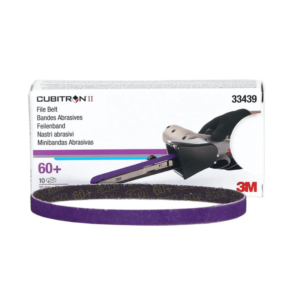 Best-in-class 3M™ Cubitron™ II File Belts are designed for use with the 3M™ File Belt Sander as a controlled, easy-to-use alternative to spot weld drilling and many common body shop metal grinding applications. Featuring 3M Precision-Shaped Grain technology, these belts deliver faster cutting, a more consistent finish, and up to two times longer belt life, while running cooler during operation.