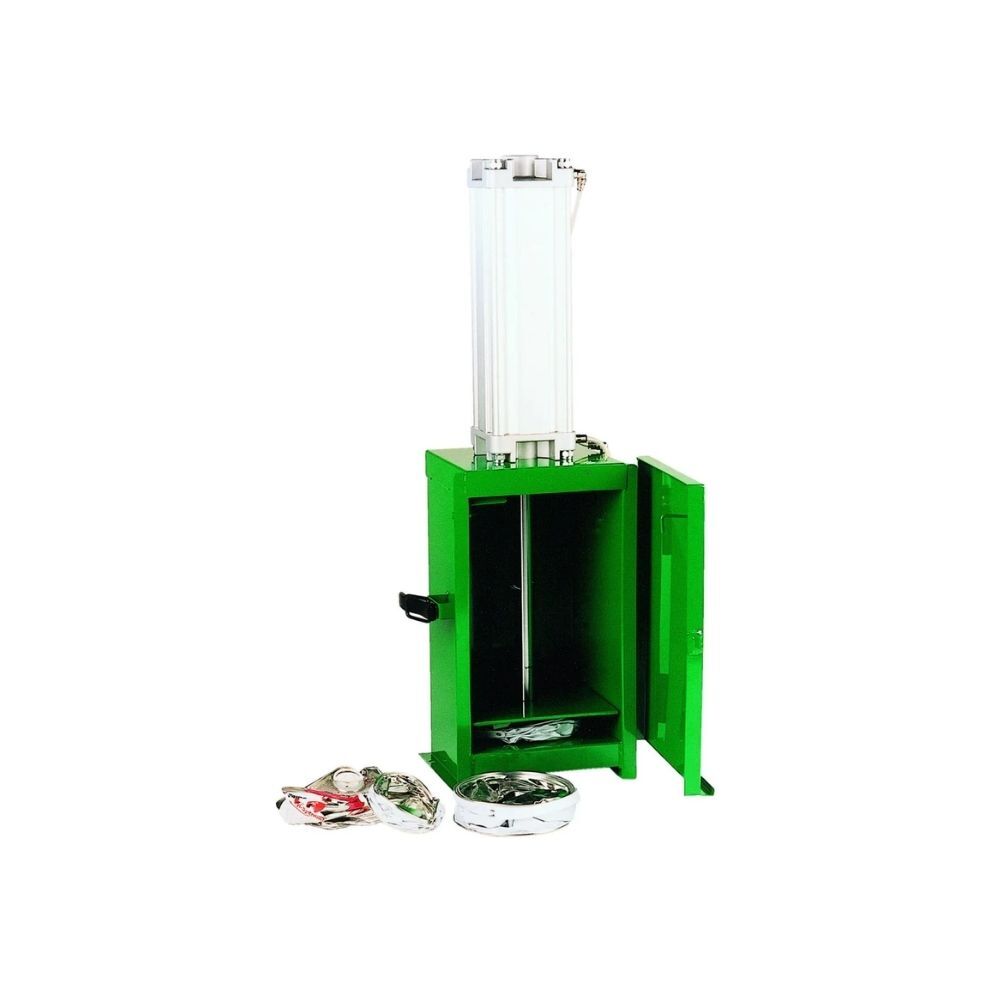Featuring a double-acting pneumatic cylinder and safety interlock, the crusher is fully automatic and suitable for bench or wall mounting. Achieve up to 80% compaction, reducing waste volume and improving recycling efficiency.