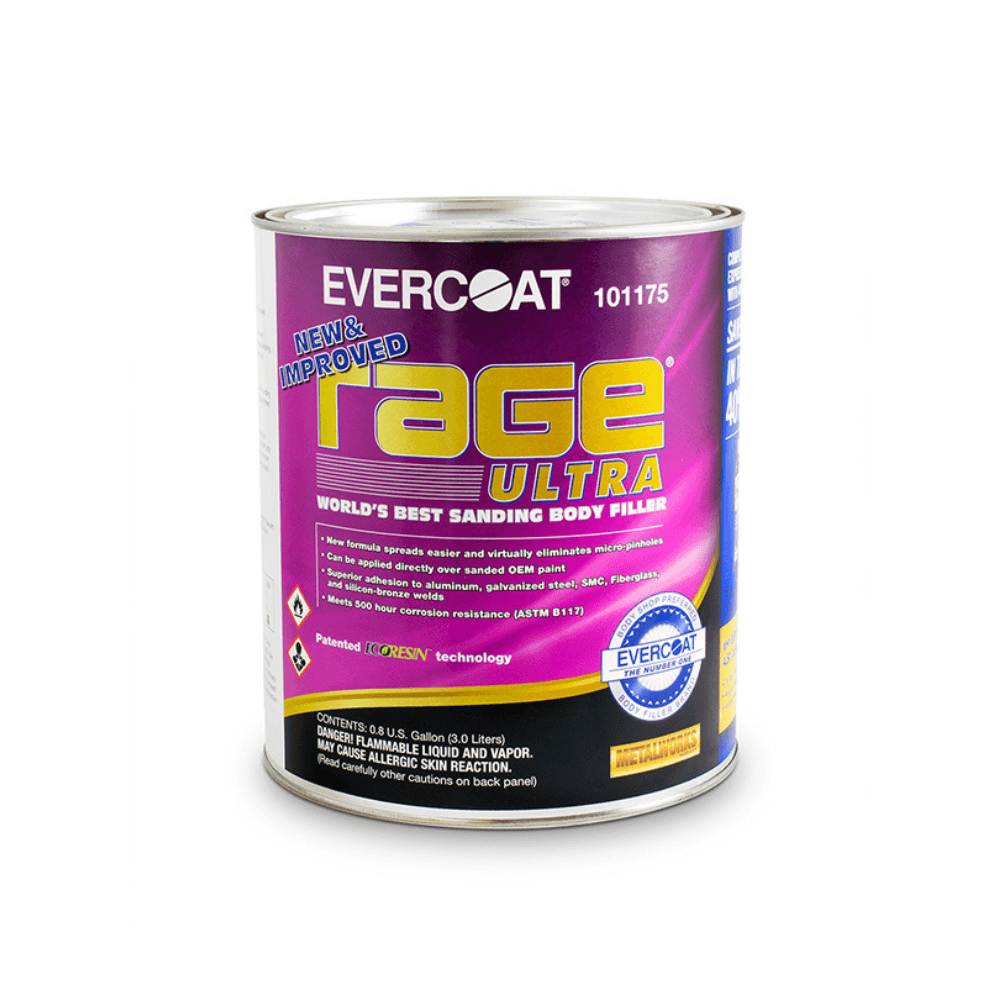Evercoat™ Rage Ultra is a premium body filler engineered for exceptional filling performance and industry-leading sandability. Its advanced formula creates a stable, non-porous surface that can be directly primed, eliminating the need for additional putty and speeding up repair times.