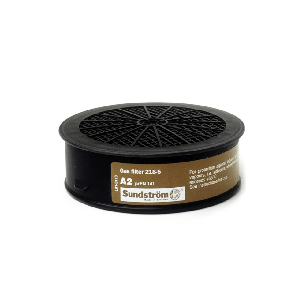A Class 2 gas filter designed for use with Sundström SR100, SR200, and SR500 respirators. Provides protection against organic gases and vapours with boiling points above 65 °C and can be combined with a particle filter for added aerosol protection. Suitable for a wide range of industrial and professional applications.